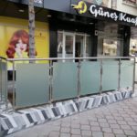 Güneş Kuaför için imal etmiş olduğumuz camlı paslanmaz korkuluğa ait görseller.
