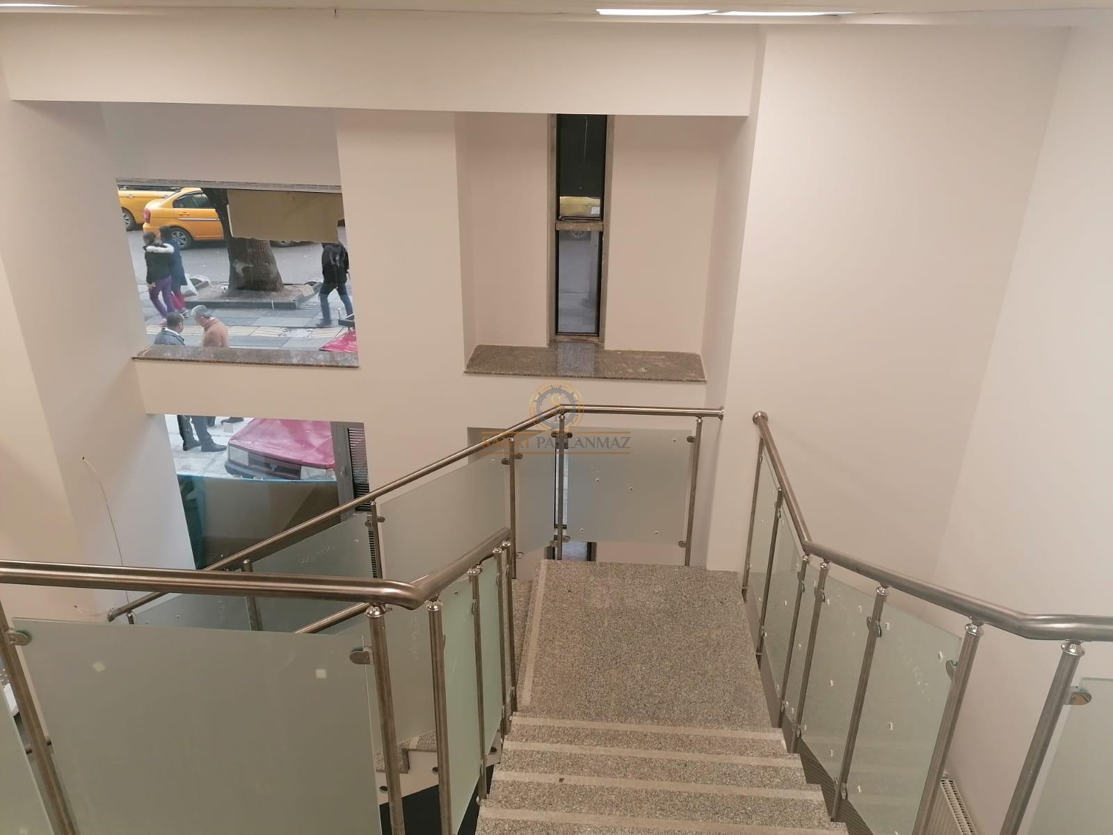 Ziraat Bankası için imalatını ve montajını yapmış olduğumuz satine camlı paslanmaz çelik merdiven korkuluğu.
